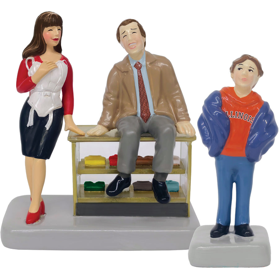The iconic scene of Russ watching his father Christmas shopping with the assistance of Mary is captured in classic Original Snow Village charm.
