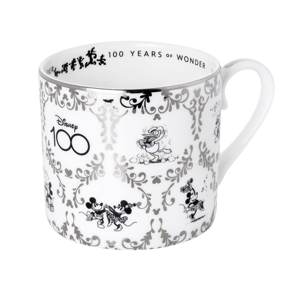 Celebrate the D100 Anniversary in style! This Mickey cup and saucer set is made of fine bone china. It has real platinum details combined with nostalgic artwork of our favorite characters.