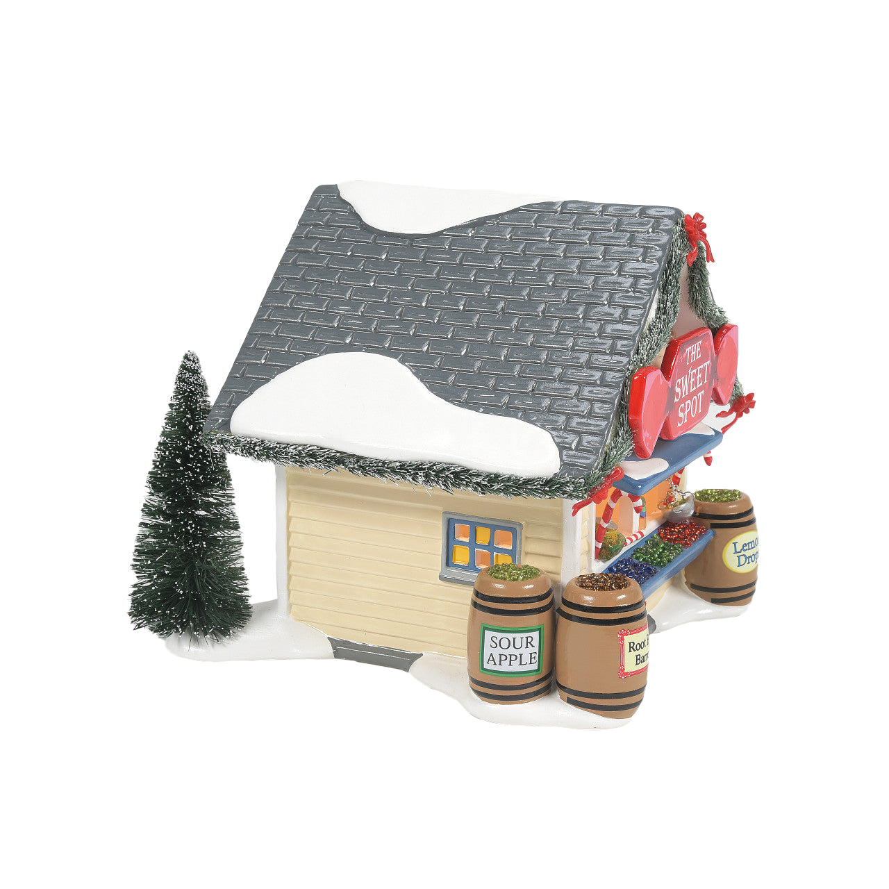 Stop at the Sweet Spot to fill your sweet spot -- this booth at the Farmer's Market is always filled with homemade candies and other treats. The piece is hand-crafted and hand-painted ceramic lit building.