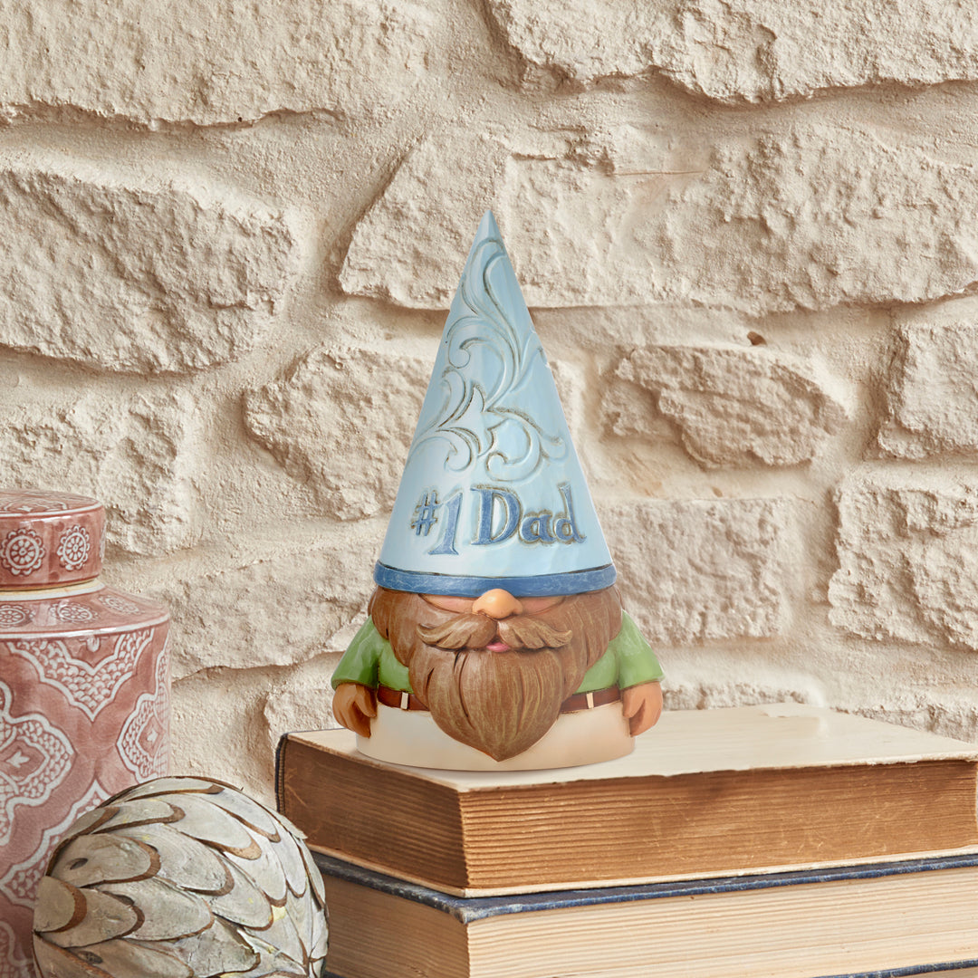 No one knows gnomes quite like Jim Shore. Let dad know there's gnome one like him with this sweet collectible from Heartwood Creek. Wearing a blue #1 dad hat, this 5" bearded gnome statuette is a charmer with rosemaling and fatherly presence.