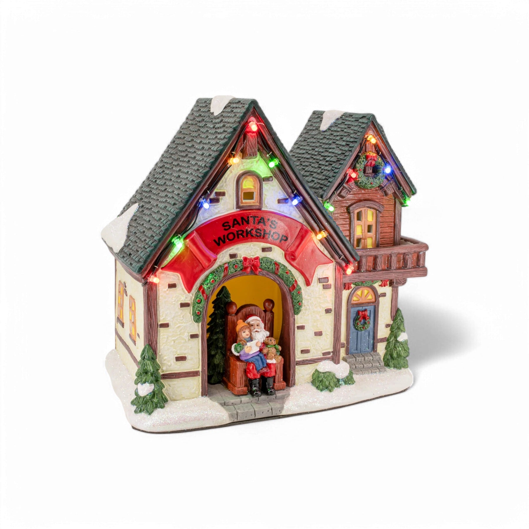 Step into the enchanting world of Santa’s Workshop, where holiday cheer and festive magic come to life! This beautifully crafted porcelain piece glows with warm LED lights, creating a whimsical holiday scene straight from the North Pole. Whether you're a collector or simply love the joy of Christmas, this must-have village piece brings Santa’s bustling workshop right into your home!