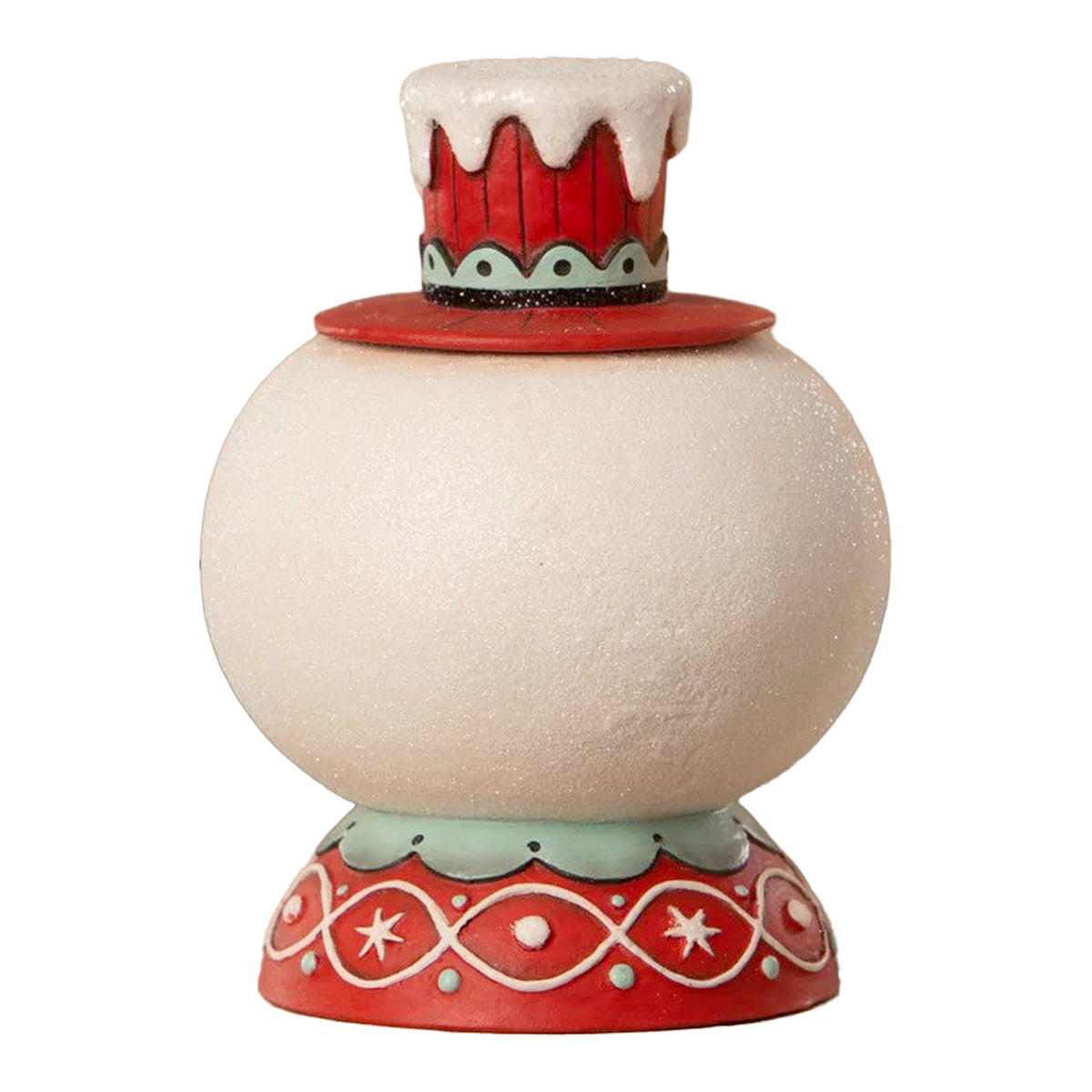 Meet Peppermint Snow Beau Container by Johanna Parker! This dapper snowman exudes holiday cheer with his charming red top hat. Surprise, you can lift the hat to reveal a container perfect for stashing sweet treats, small gifts, or festive surprises. With his classic snowman features and Johanna Parker’s signature vintage-inspired design, Peppermint Snow Beau is a delightful addition to your holiday décor and a whimsical way to spread seasonal joy.