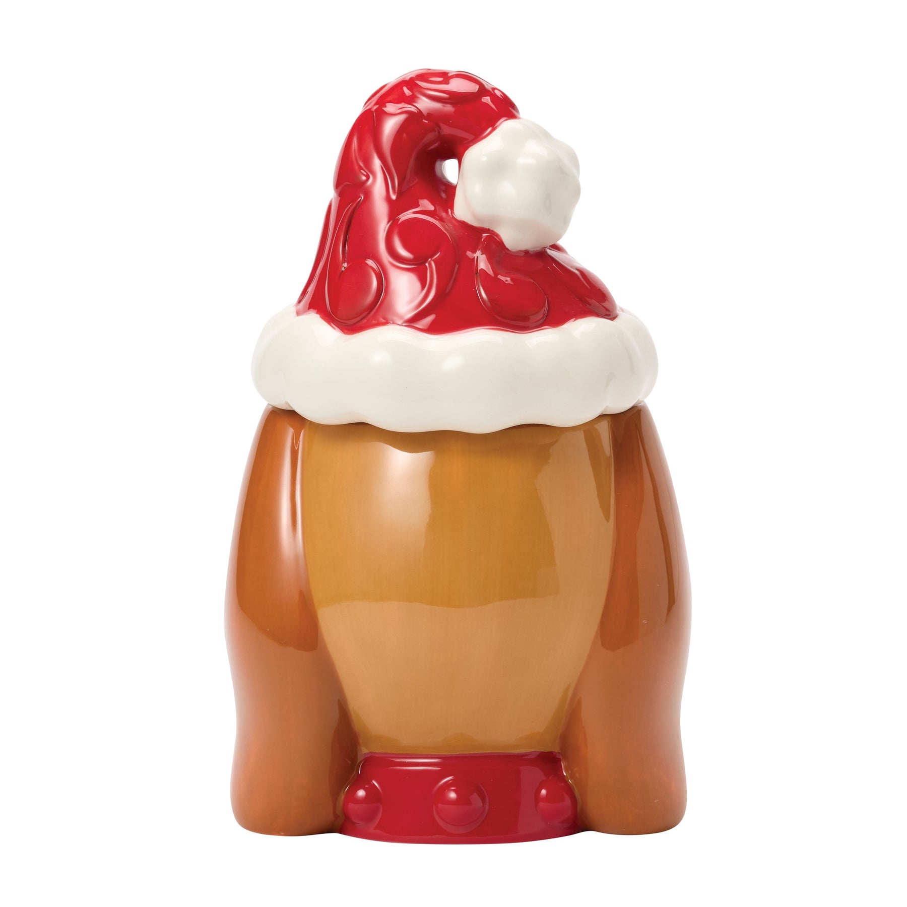 This delightful Jim Shore treat jar is shaped as Max with a cheerful face adorned with a festive Santa hat and smile. He's been a good boy this year helping The Grinch with his plans to steal Christmas, how does your pup stack up?