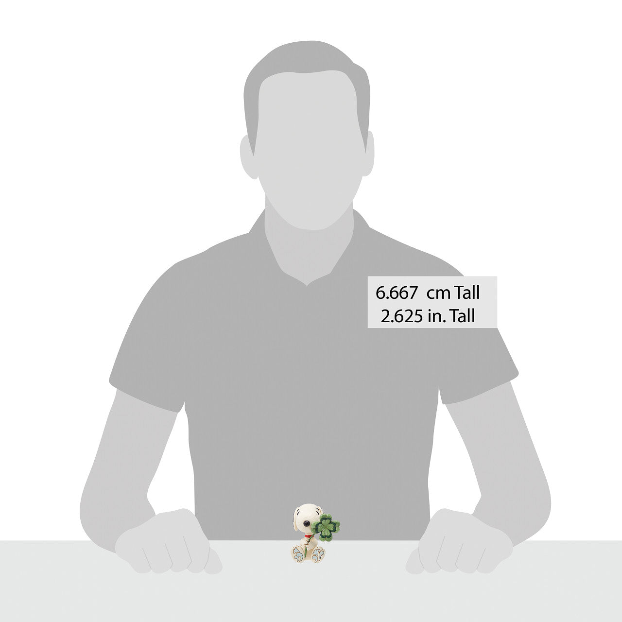 This miniature design by Jim Shore features the artist's classic style matched with a beloved Peanuts character. With patchwork ears and rosemaled paws, Snoopy the dog holds a gigantic four-leaf-clover with a sincere smile. Embrace luck this year!