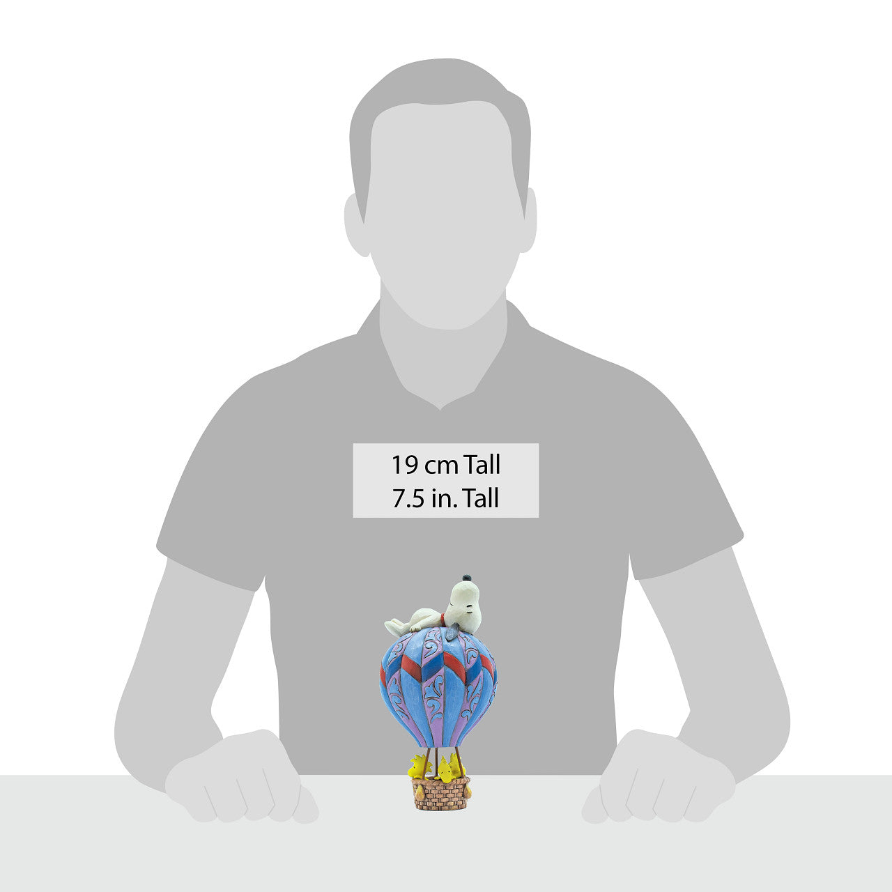 Woodstock and friends can't seem to figure out why they aren't getting too far off the ground in this comical Jim Shore statuette. Hot air balloon outfitted in alluring pattern and rosemaled details, the bird's accent is halted by sleeping Snoopy.
