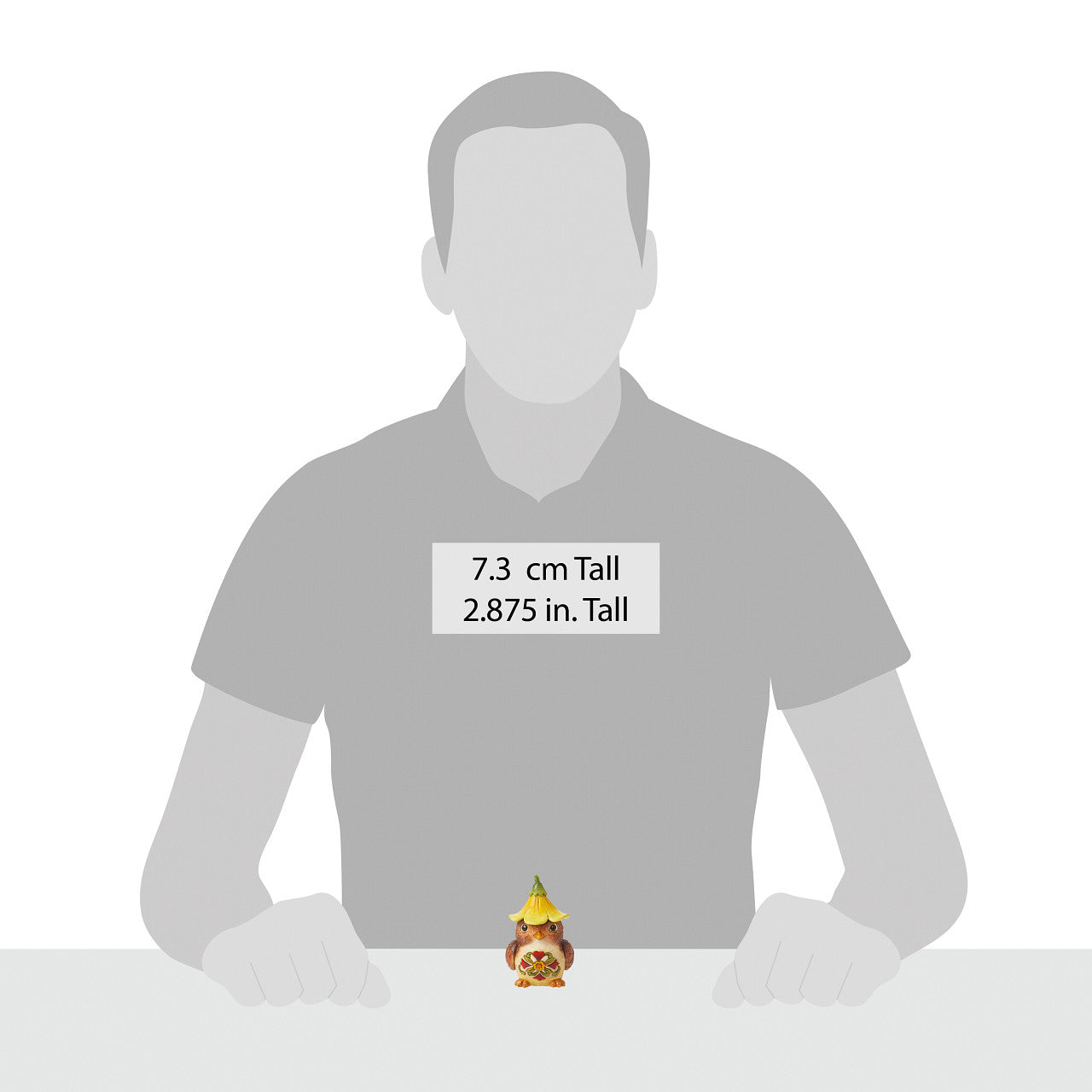 This adorable little bird from Jim Shore is as cute as they come! With a darling face, sweet gaze, and gentle rosemaling, this harvest bird will steal your heart and brighten your home. She wears a miniature petunia flower as a hat.