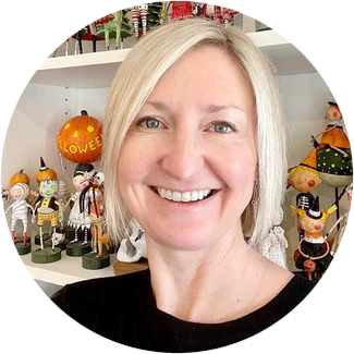 Lori Mitchell was born and raised in Marietta, Georgia. She is a graduate of the Rhode Island School of Design. Lori finds inspiration in old illustrations, children’s tales and anything whimsical. In 1998, she discovered folk art, and fell in love with the charm and nostalgia that this field embraces. Lori creates pieces that take people back to the magical years of childhood. In designing, Lori starts off with an idea, but as she sculpts, the characters begin to define their own personality. Lori is known for her exaggerated proportions and expressions…and every piece must have crazy socks!