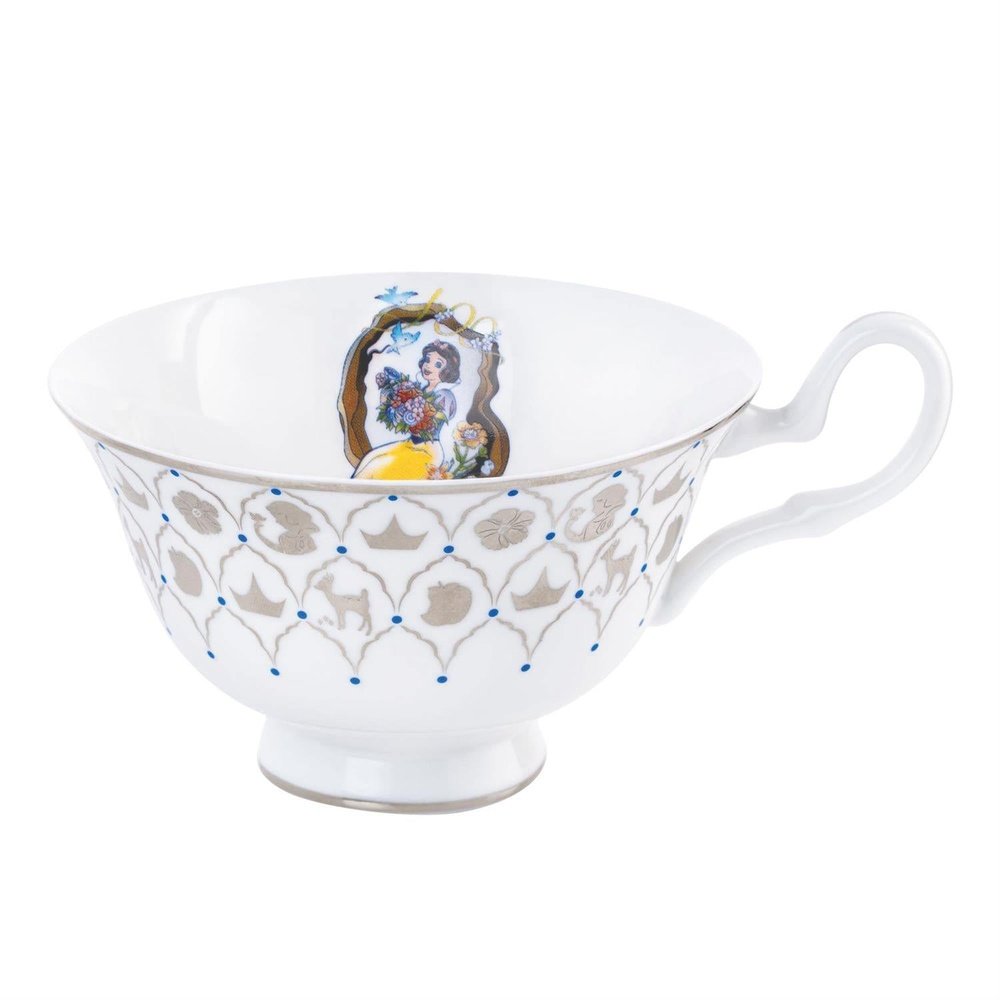 Beautiful Snow White wears her classic blue and yellow dress in our Disney Princess cup and saucer set made of fine bone china. The classic elements from the beloved movie Snow White and the Seven Dwarfs are hidden within the design. It has real platinum details combined with nostalgic artwork of our favorite characters.
