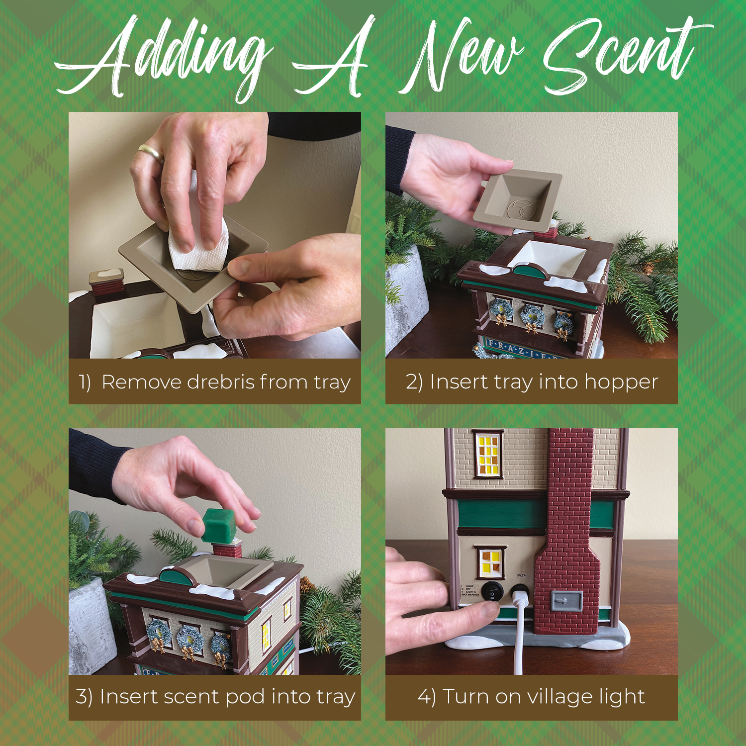 Frazier's is designed to fit seamlessly with your other Original Snow Village lit houses but incorporates a discreet warming tray that allows you the option to add your own wax melts for wafting fragrance throughout your display.