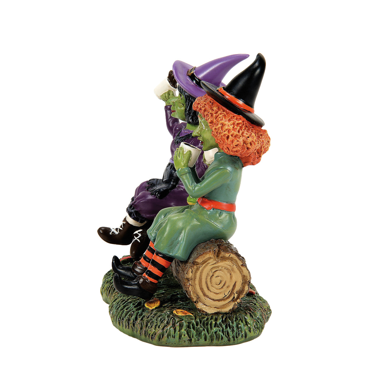 Their late-night spell work has caught up with them or perhaps the caffeine is boosting their powers! The purple witch is trying to steady her jittery nerves - note her bobble head - for some playful motion.