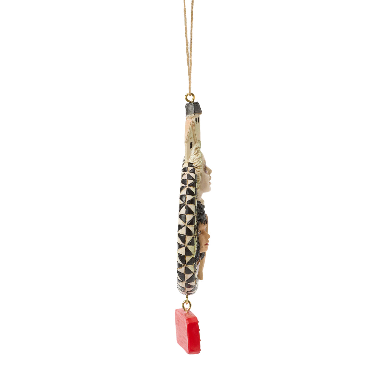 This whimsical Jim Shore ornament showcases the beloved characters from Beetlejuice framed by the film's iconic sandworm, bringing a touch of playful mischief to your holiday decor. Have yourself a cult classic Christmas with this quirky tree charm.