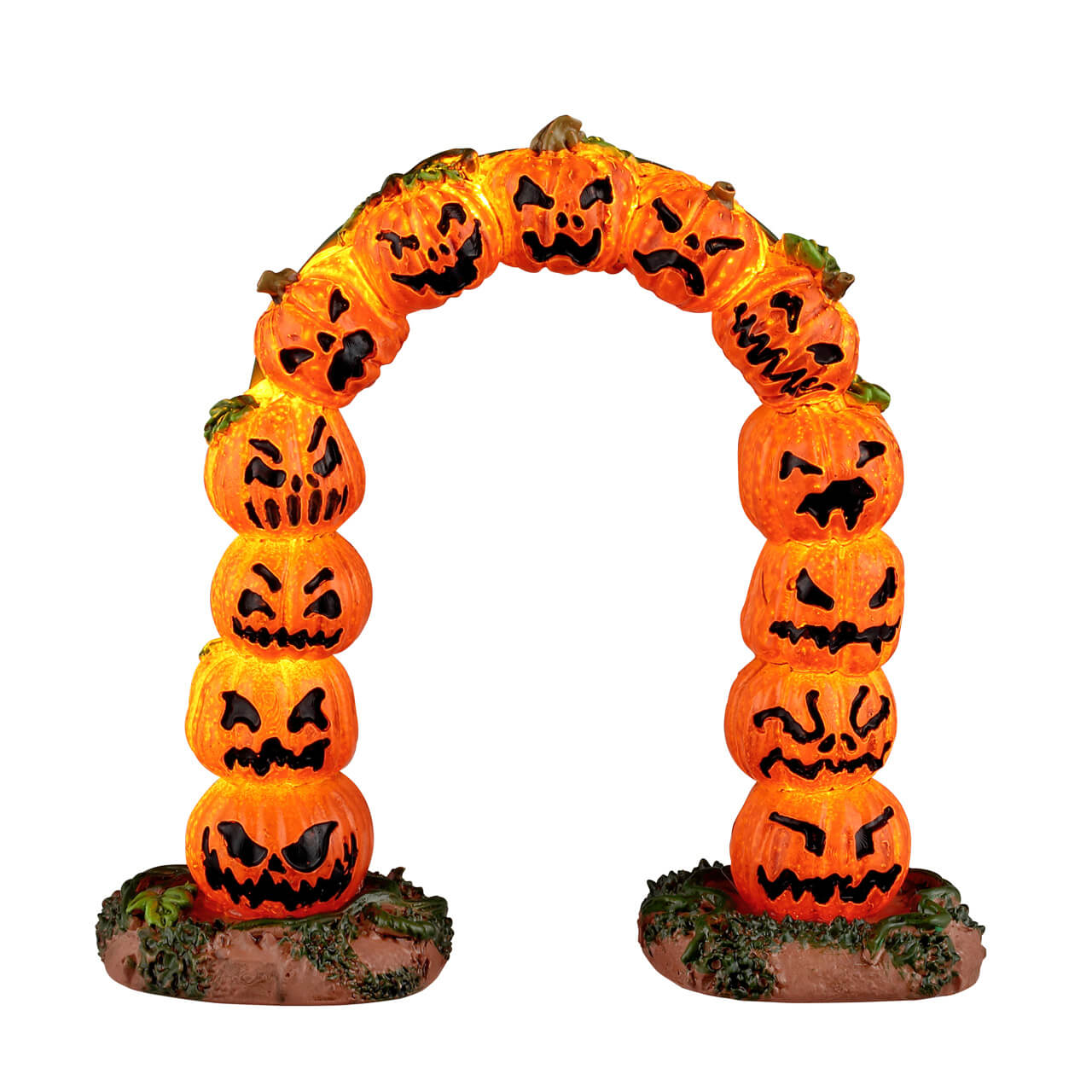 The gang's all here! A group of gourds has gathered together to form this festive arch. Their carved expressions depict everything from cheery smiles to horrified gasps. Golden light spills out from between the cracks as the pumpkins grin at passersby. There's no need to be scared of these funny gourds, so go ahead and step through their gateway as you enjoy the night. Hang on, did one pumpkin just wink?