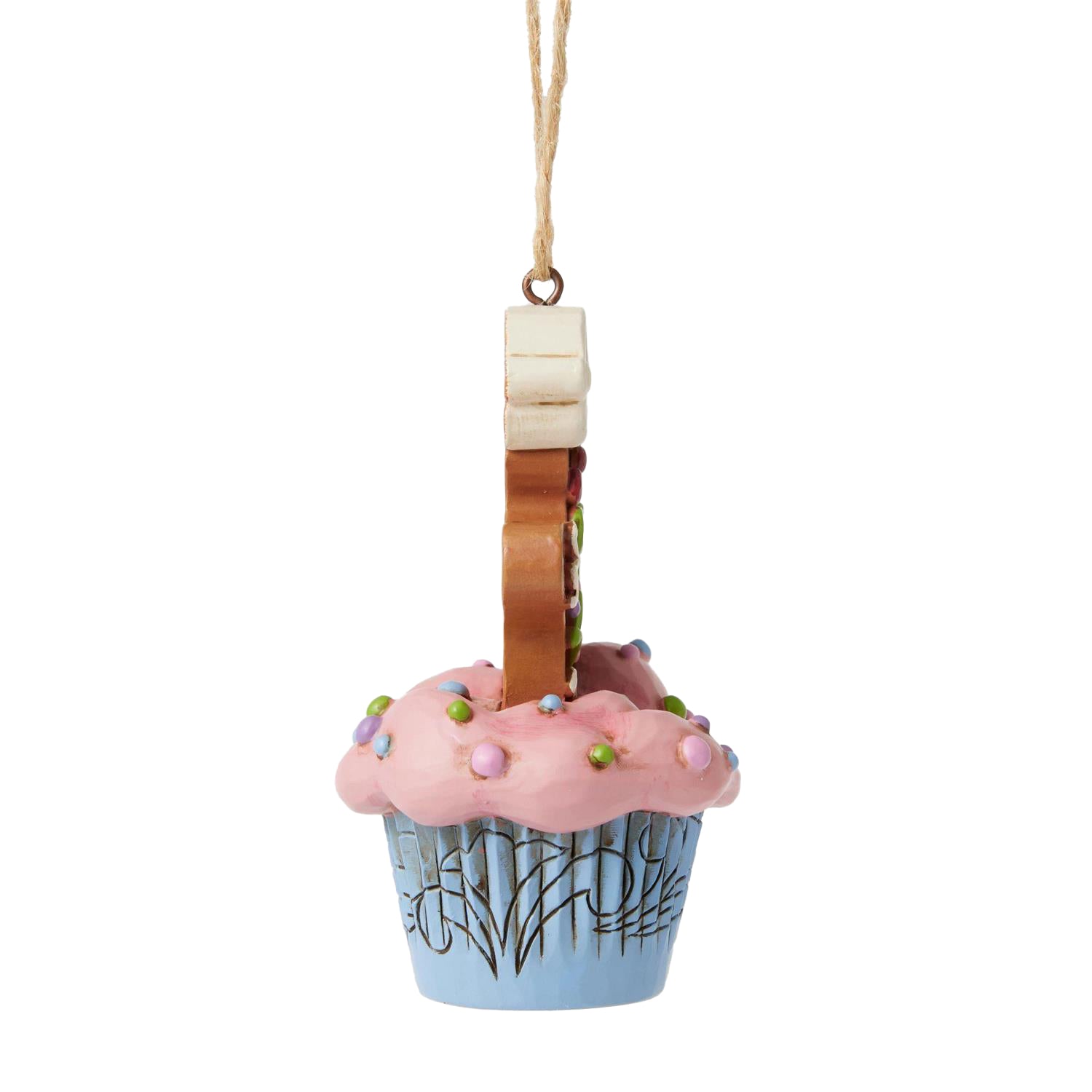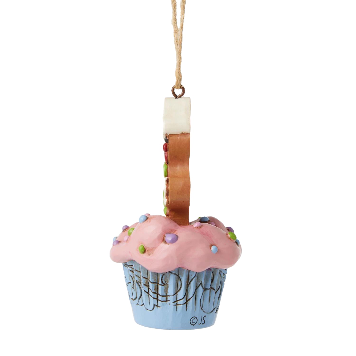 This delightful Jim Shore ornament features a cheerful gingerbread man holding a candy cane, joyfully popping out of a sprinkled cupcake. With his charming smile and festive details, he adds a sweet touch of whimsy to your holiday tree decorations.