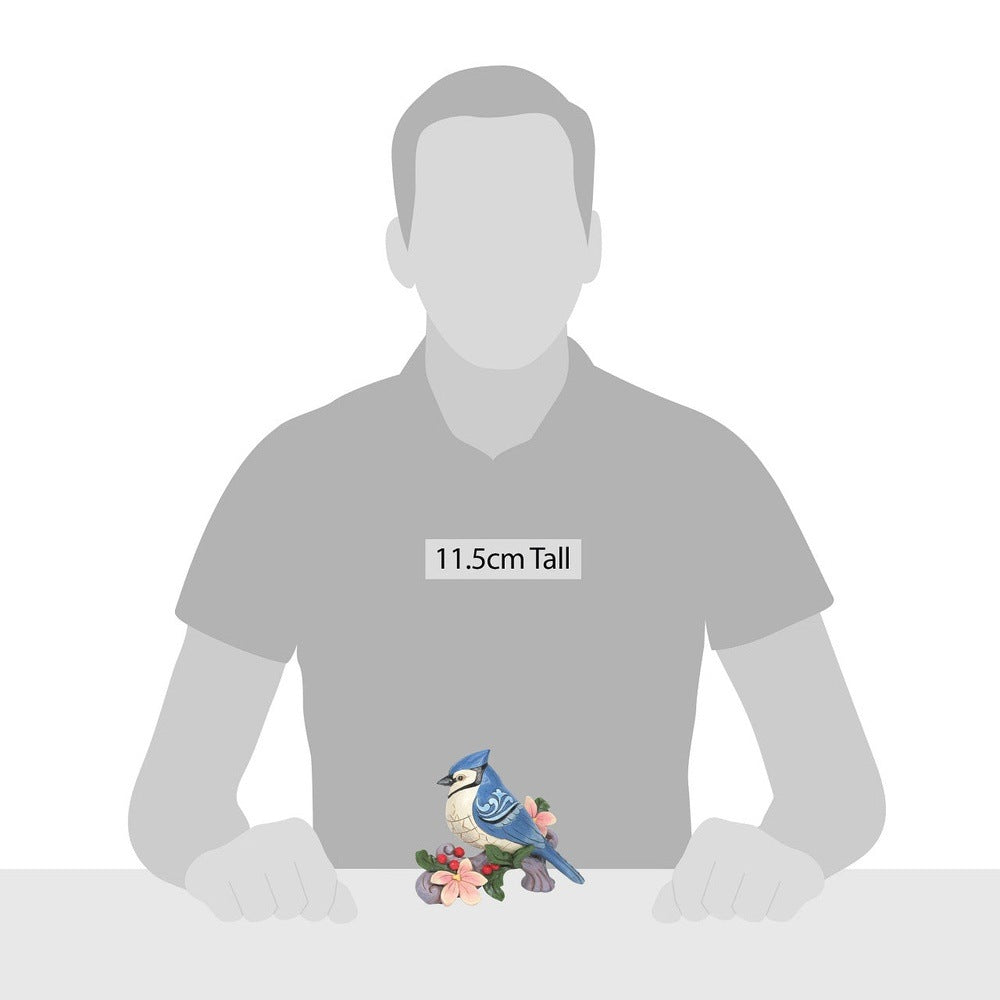 Bring the great outdoors inside with this gorgeous bird bust. Sitting on a branch covered in flowers, this 5" Blue Jay brings grace to any home. Jim Shore's trademark patchwork and rosemaling details are complimented by the bust's bright color.
