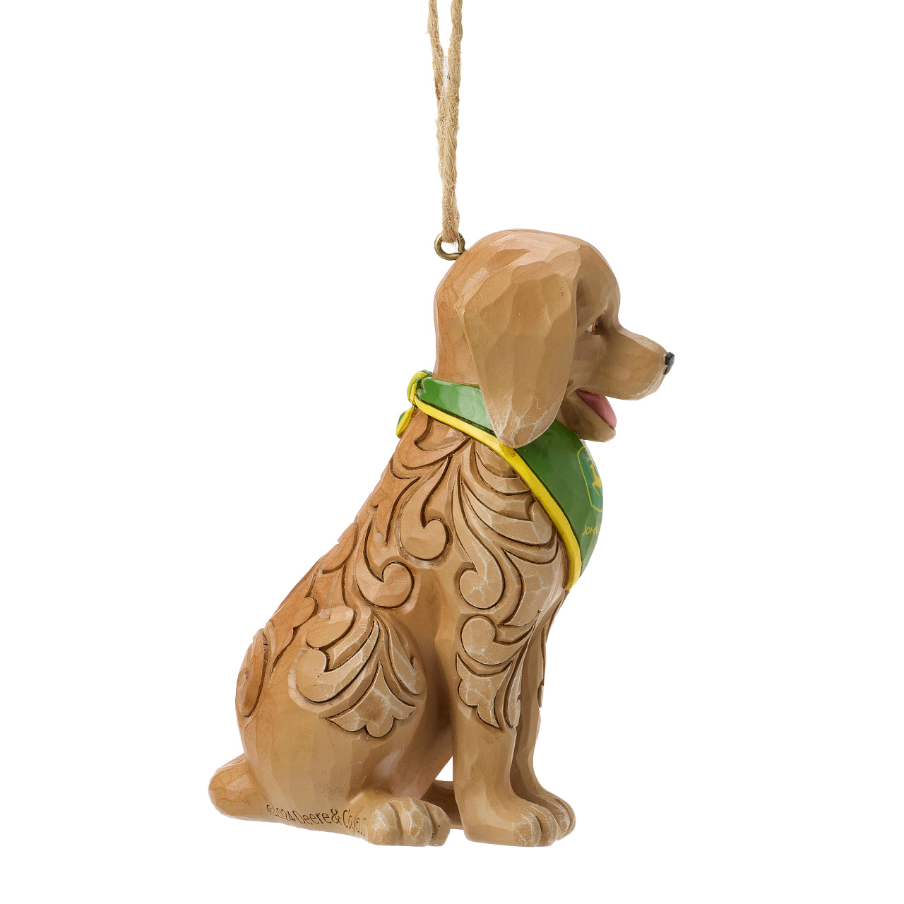 Celebrate the season with this cheerful Jim Shore ornament featuring a happy puppy dressed in a green and yellow bandana. Adorned with rosemaling details on his fur, this joyful dog adds a playful and farm-inspired touch to your tree.