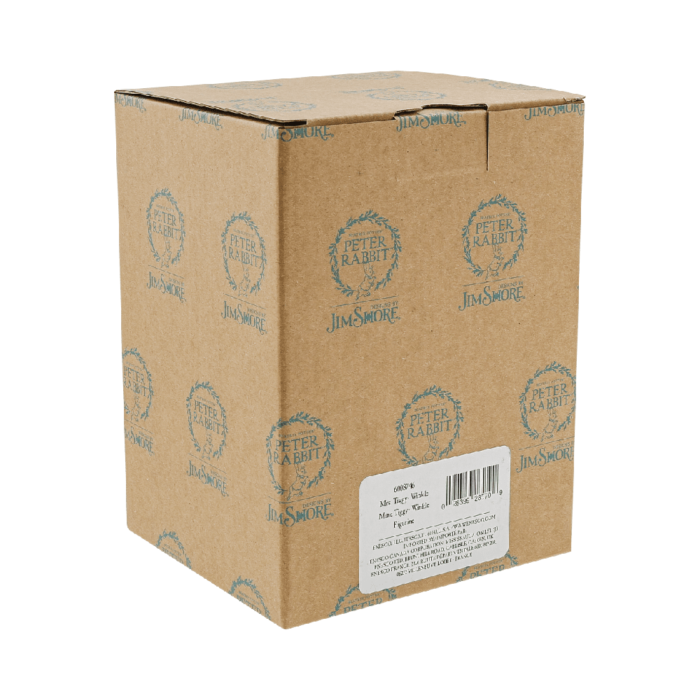 For nearly 120 years the story of Peter Rabbit by Beatrix Potter has captivated audiences of all ages and backgrounds. Ms. Tiggy-Winkle, Peter Rabbit's friend and neighbor, sweetly stands in this Jim Shore statute, iron in hand. The sociable hedgehog smiles sweetly.
