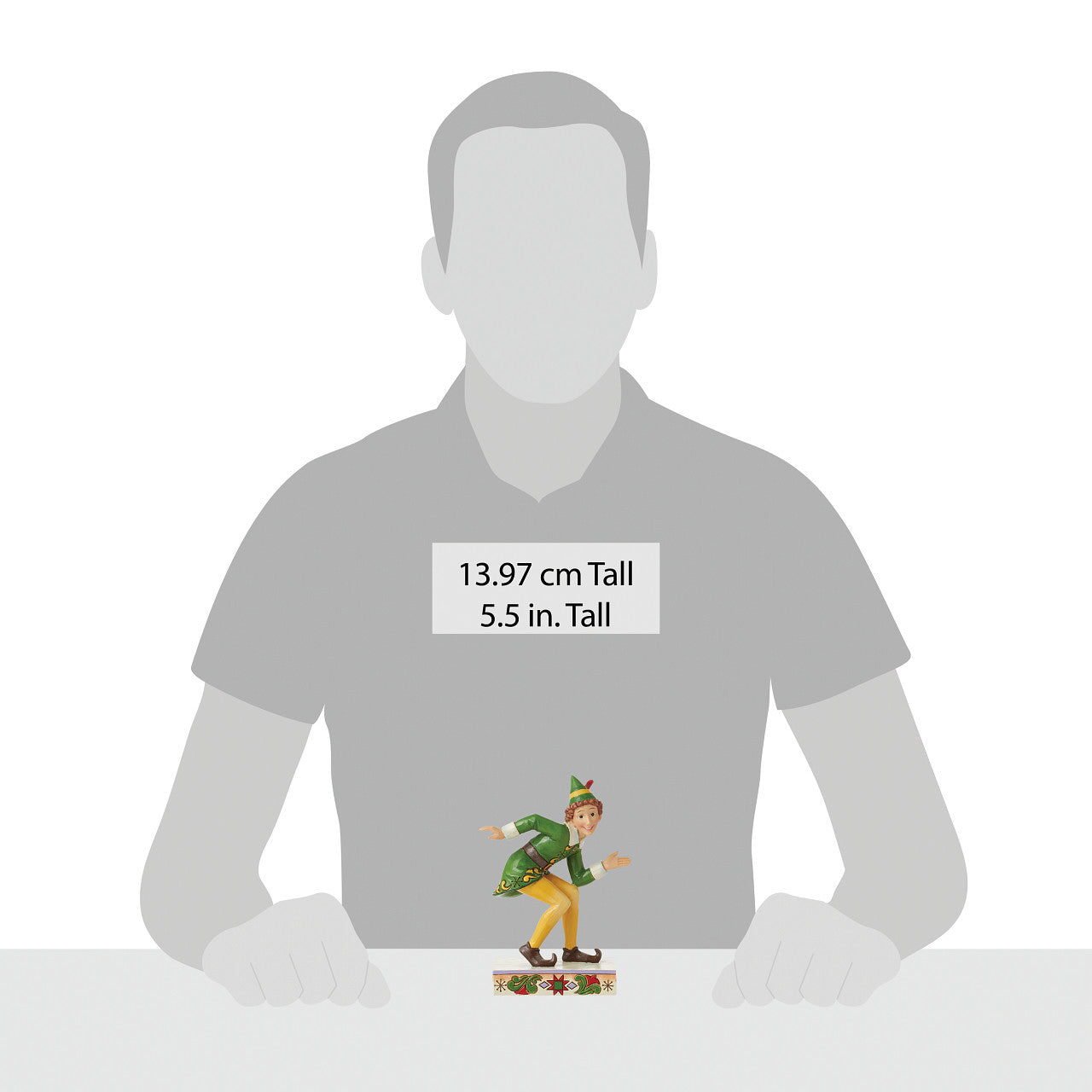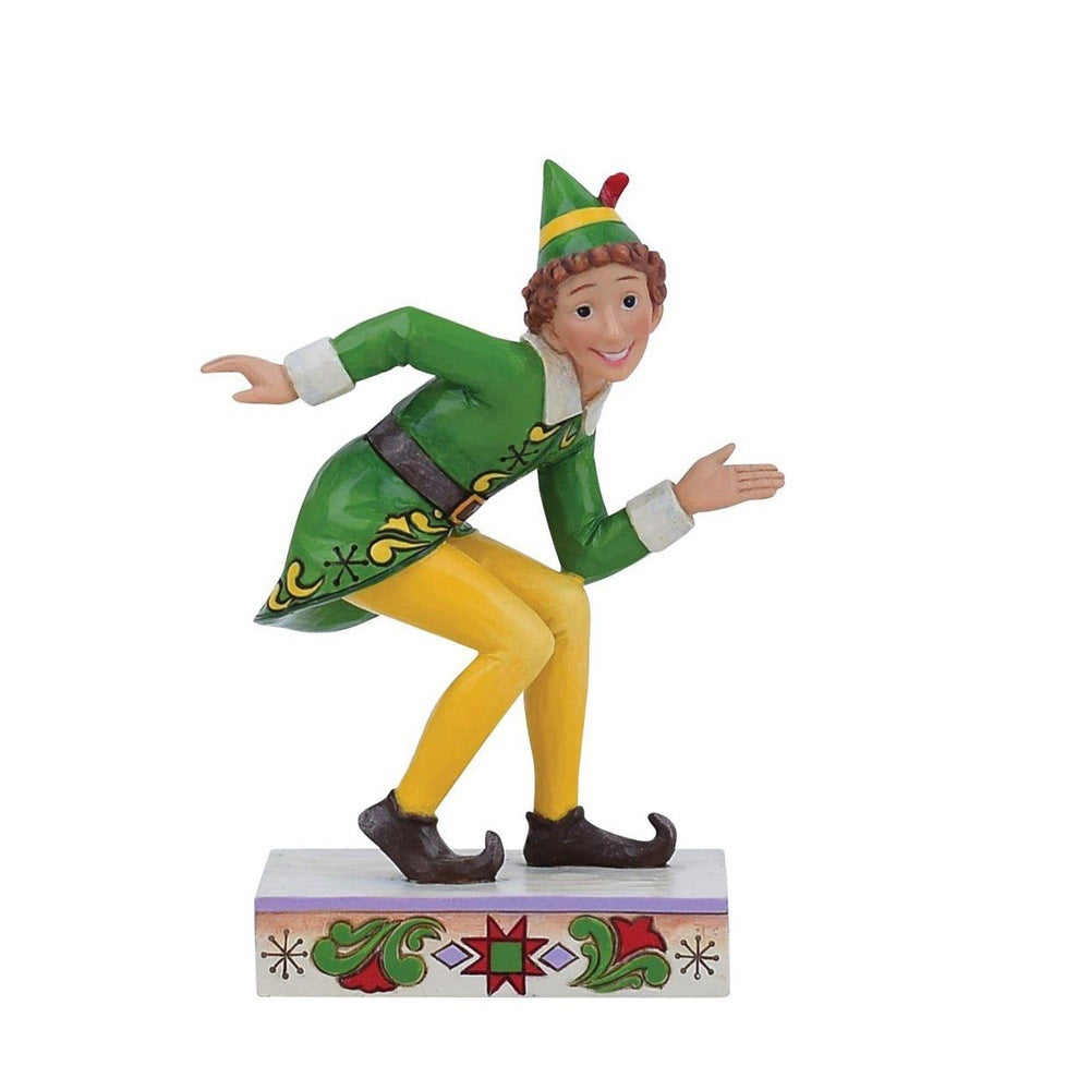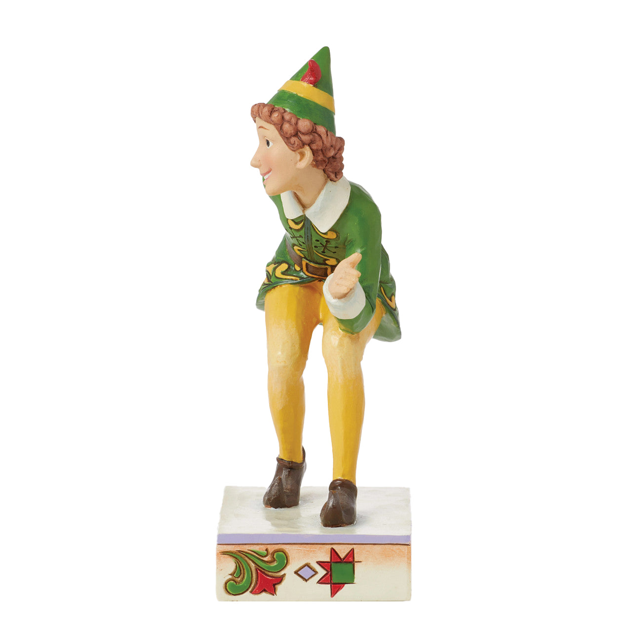 Always too big, Buddy the Elf does a lot of crouching to navigate about the North Pole. With a smile and iconic uniform, Buddy is reimagined by Jim Shore with striking pattern and detail. Cherish the classic Christmas film with this iconic design.