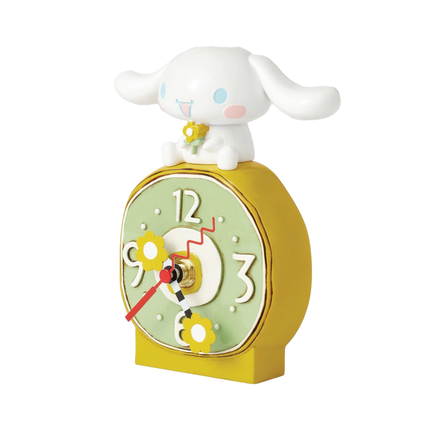Add a pop of sunshine to your study space with this playful Cinnamoroll desk clock by Allen Designs. With a cheerful yellow base, flower-shaped clock hands, and a smiling Cinnamoroll perched on top, this clock is a sweet reminder to enjoy the day!