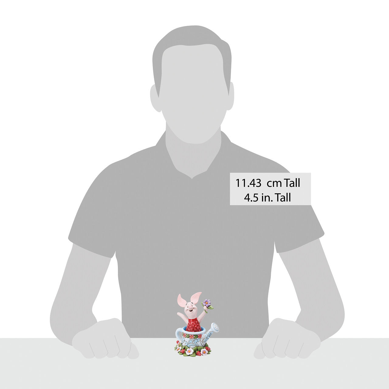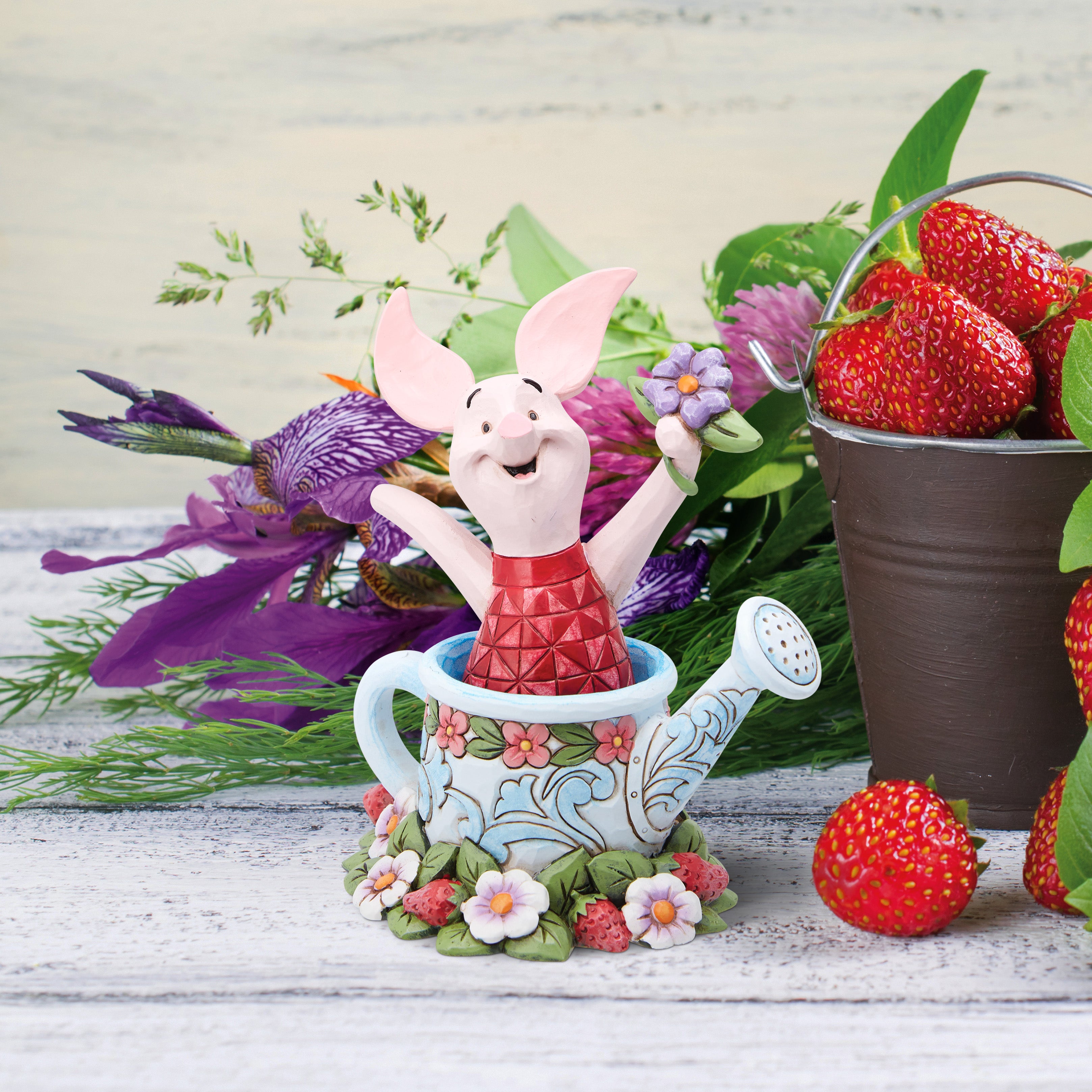 Piglet delightfully cheers from inside a watering can in this Jim Shore design. Featuring the artist's iconic patchwork and rosemaling, the piece is surrounded with colorful flowers as Piglet presents one picked just for you.