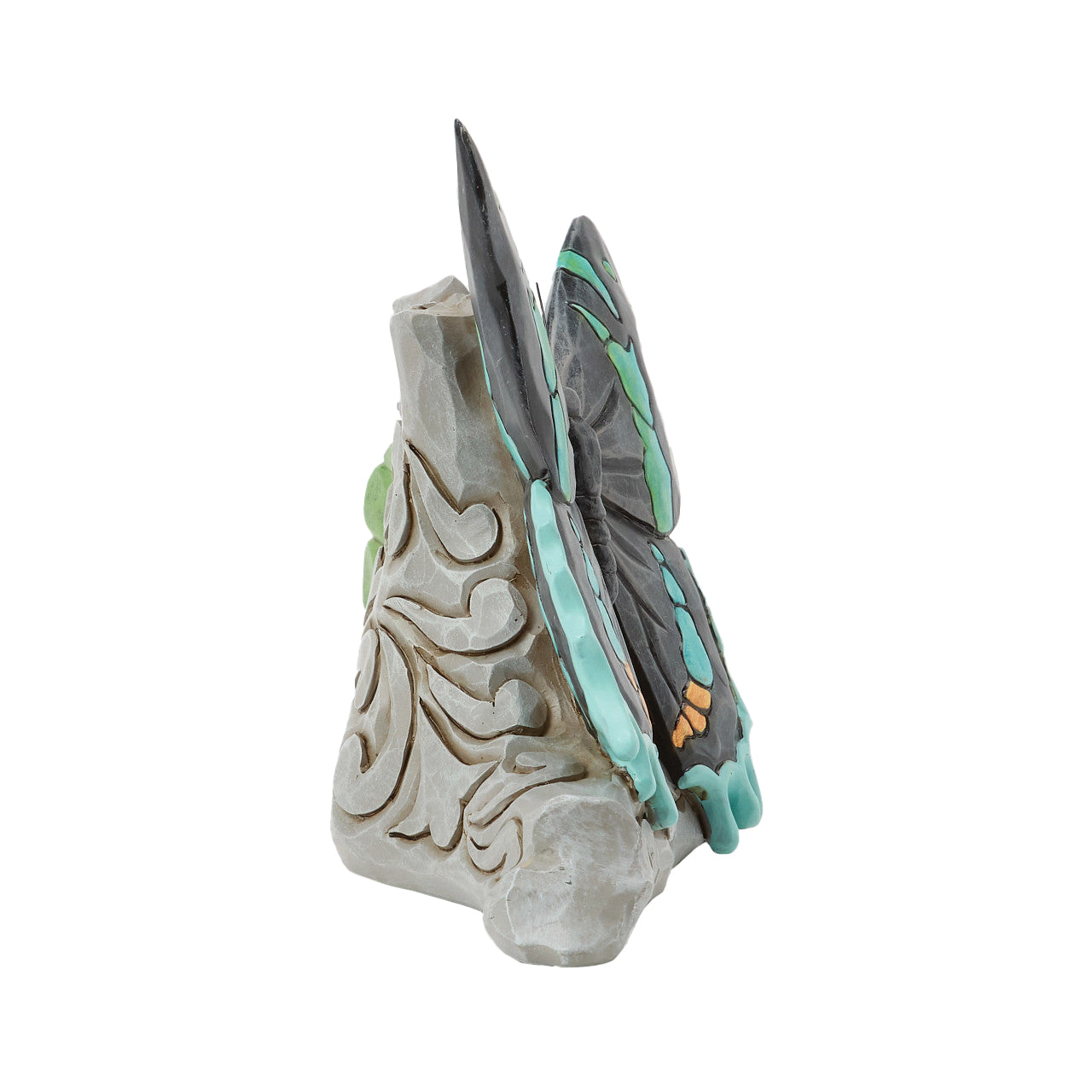 Crafted from hand-painted stone resin, this breathtaking Jim Shore piece captures the beauty of nature with a striking Goliath butterfly perched on branch with elegant rosemaling. The piece is a delicate blend of artistry and sustainability.
