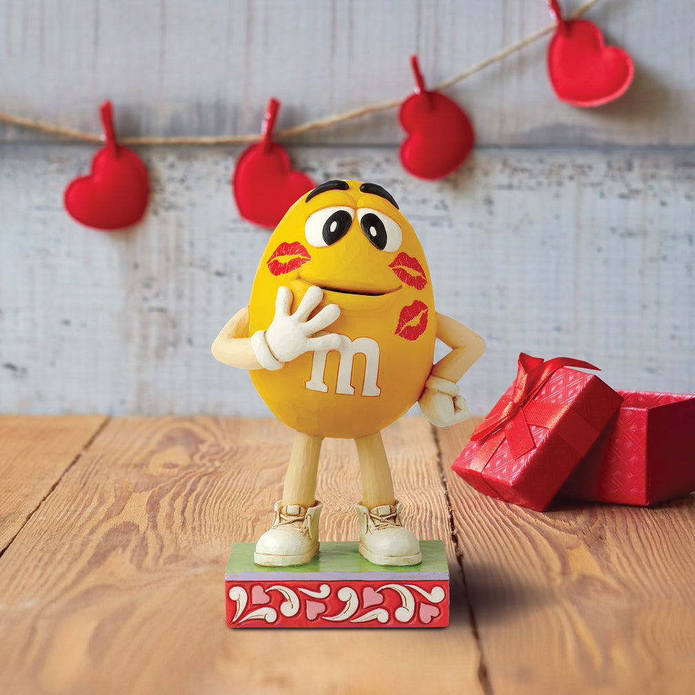 The Jim Shore piece portrays the iconic Yellow covered in lipstick and chocolate kisses, evoking the indulgent spirit of Valentine's Day. With gorgeous craftsmanship and rich hues, he's a delectable tribute to the joy of love and chocolate.