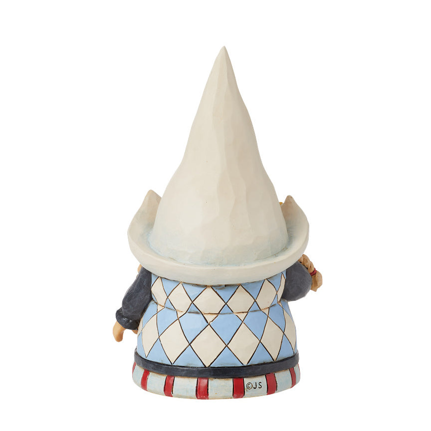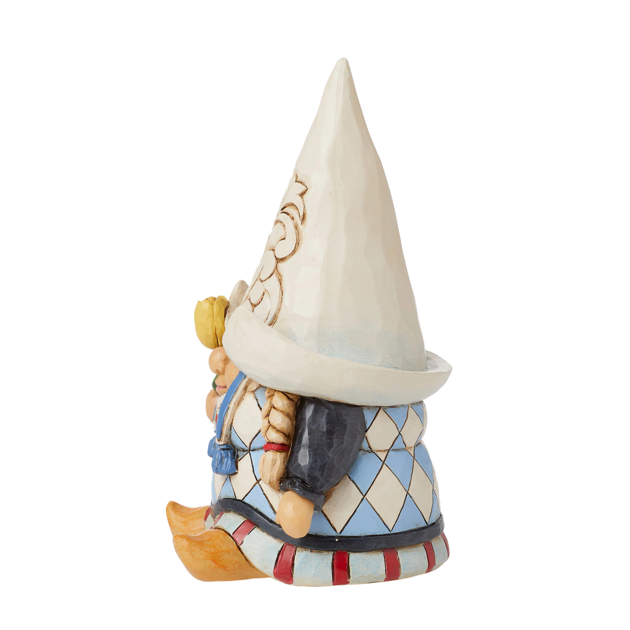 No one knows gnomes quite like Jim Shore! This Gnome Around the World depicts a charming Dutch girl adorned in traditional attire, with a flower-patterned bonnet and blonde braids. Wooden clogs add to her quaint charm as she holds a flower to honor Dutch culture and history.