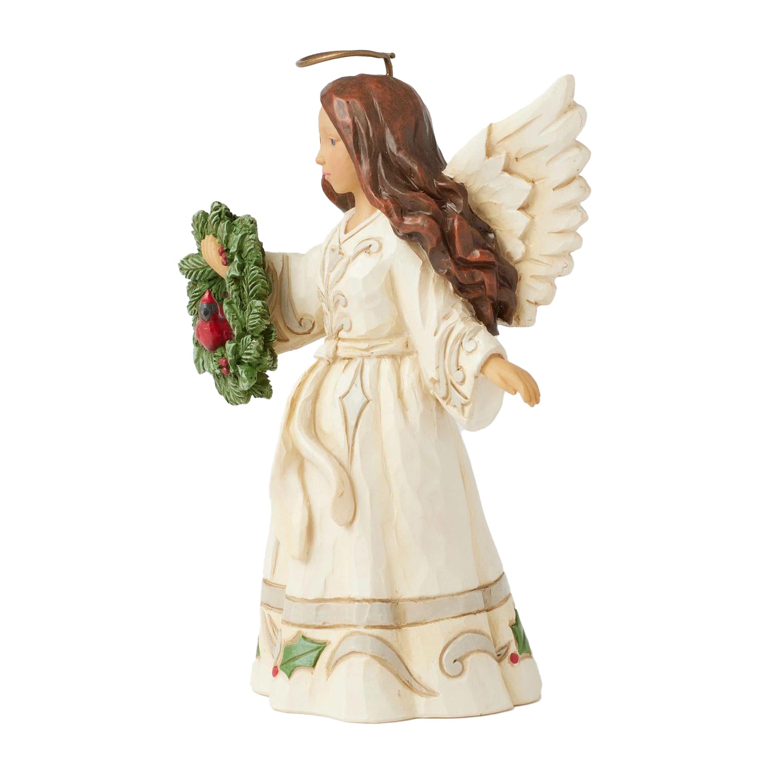 Jim Shore Heartwood Creek: White Woodland Angel with Cardinal In Wreath Figurine