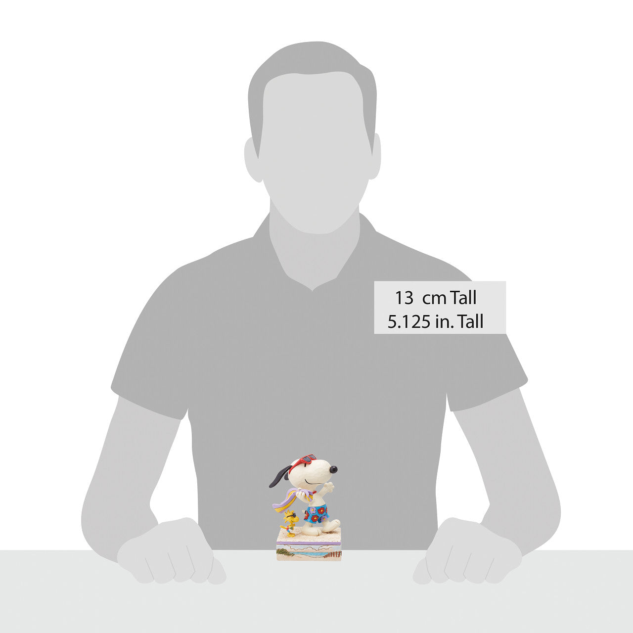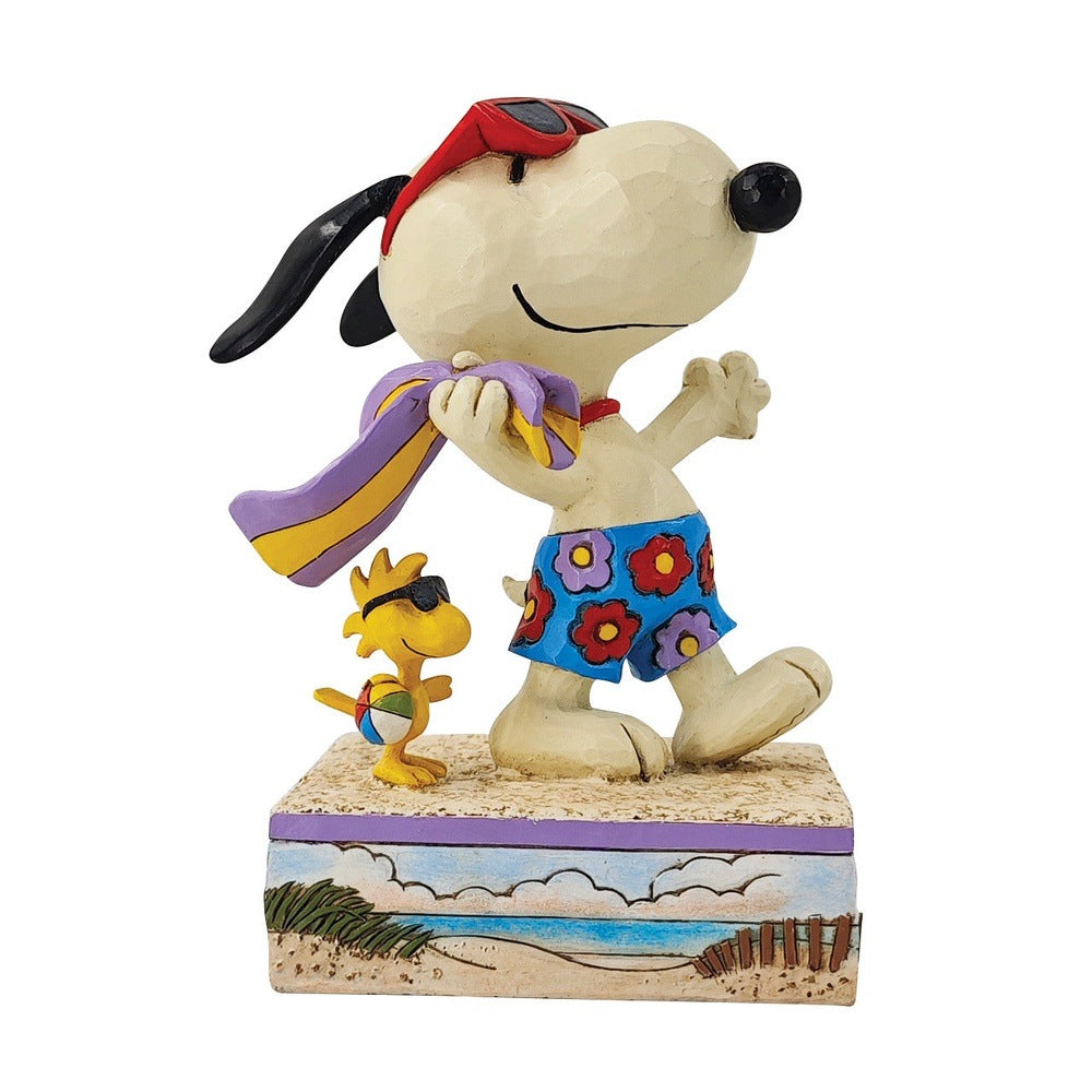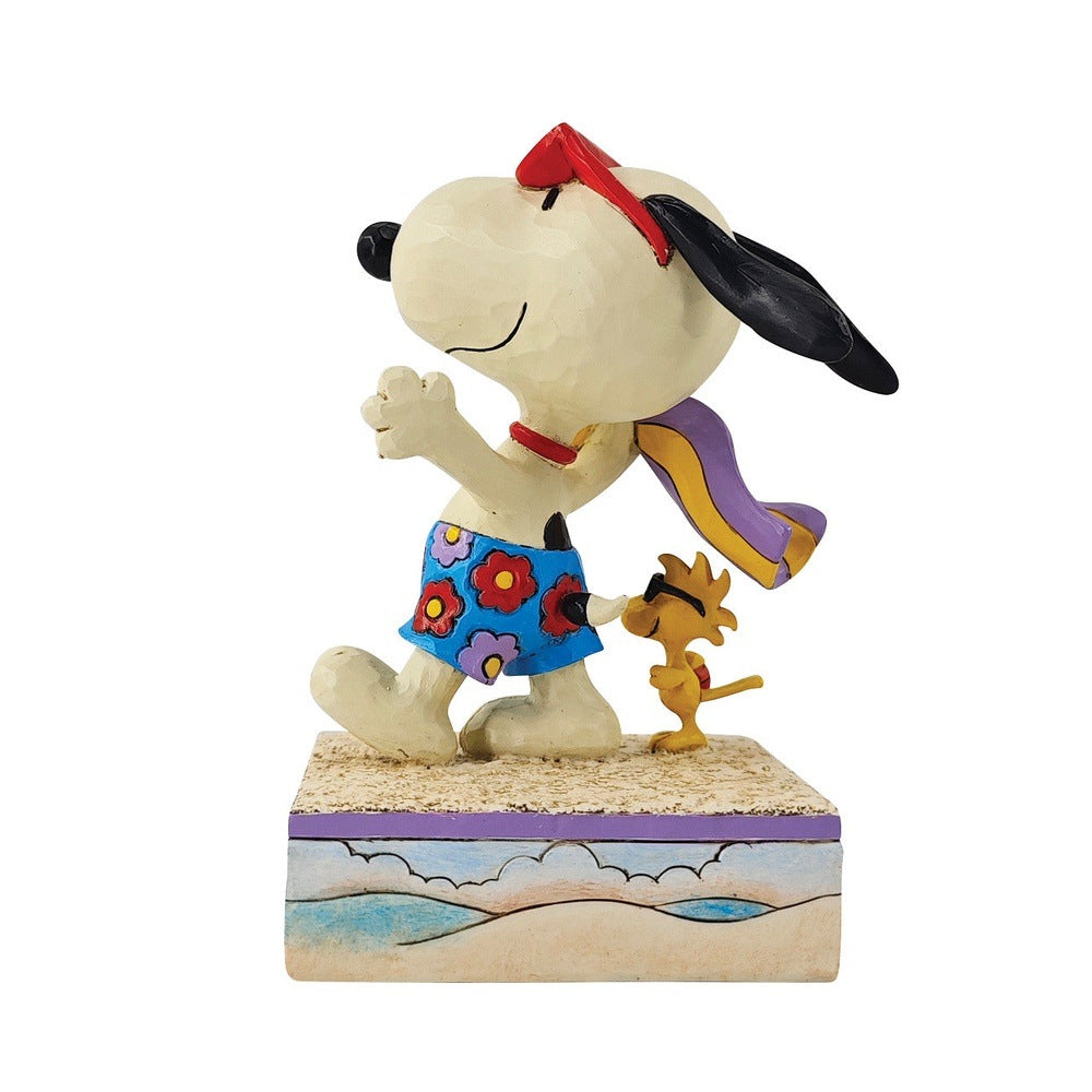 This Jim Shore creation features the Peanuts poolside! Wearing swimsuits and sunglasses, Snoopy and Woodstock prepare for a dip. Walking along the shore, the pair don't have a care in the world. Woodstock even carries a miniature beach ball.